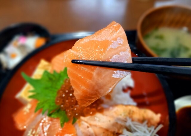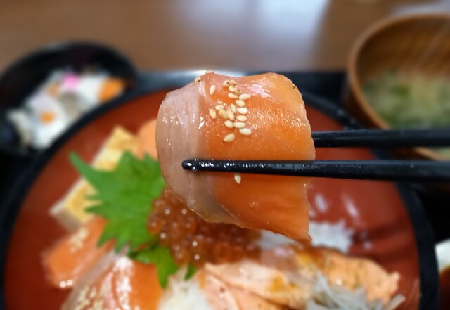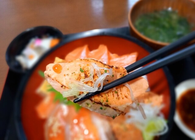 ーモン丼はトロサーモン、炙りサーモン、漬