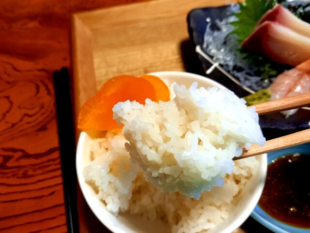 鰤、鱸、甘海老の3点となめこの味噌汁にご飯