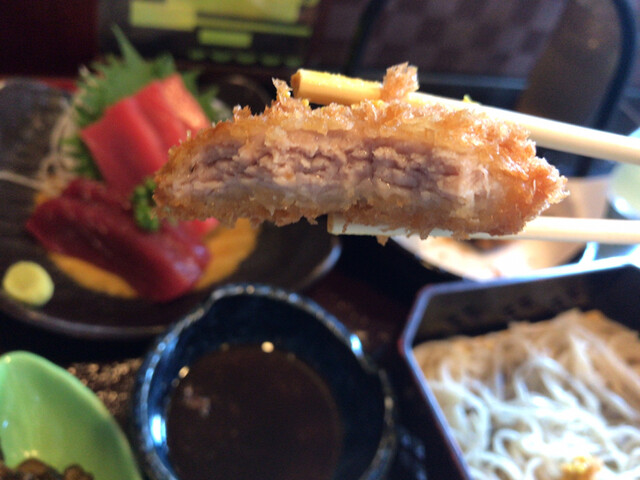 お刺身、せいろ、ヒレカツ、サラダ、厚焼き卵、とろろと、食べるの大好き人間には、たまらない品数。