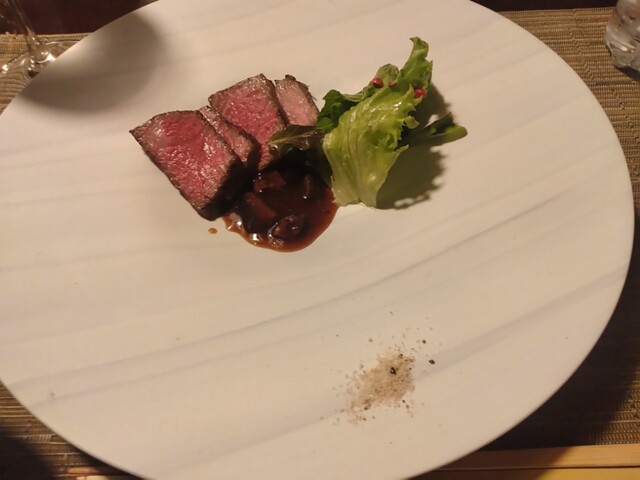 黒毛和牛のグリエ醤油と赤ワインソース これも文句無しですね(^^)