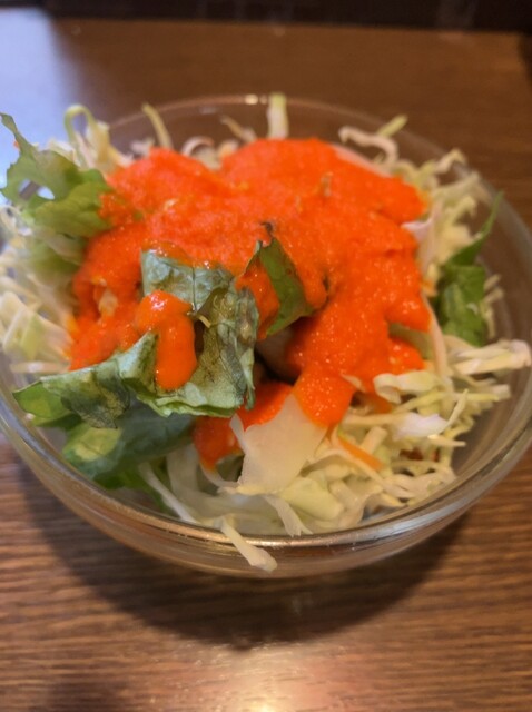 レタスとキャベツが入ったシンプルなサラダで、酸味の効いたドレッシング。