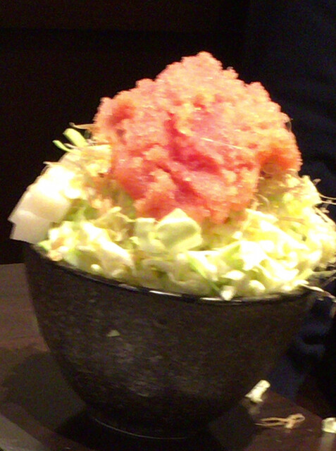 明太子・もち・チーズ・キャベツ・桜えびの入ったもんじゃ。
