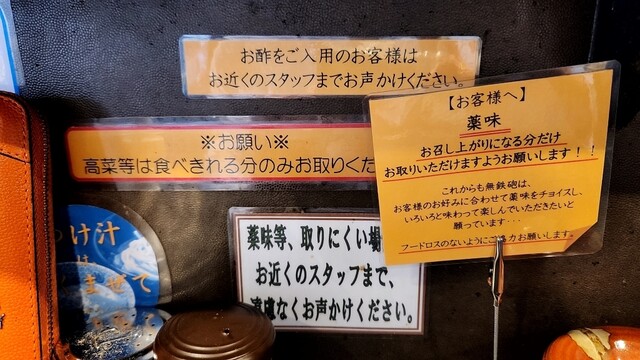 麺がとても多いため途中で「もしかしたらスープ足りないかも」と思い始めた頃、店員さんが「スープ追加しましょうか?温めましょうか?」と。