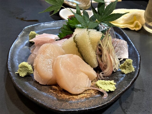 大きな帆立、分厚い子持ち昆布、鮪に鯵と美味しい