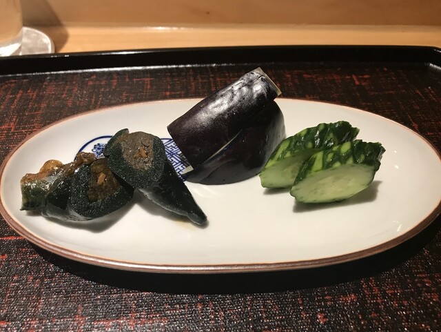 先ずは八寸 車海老とキスのお寿司、はまぐり煮貝