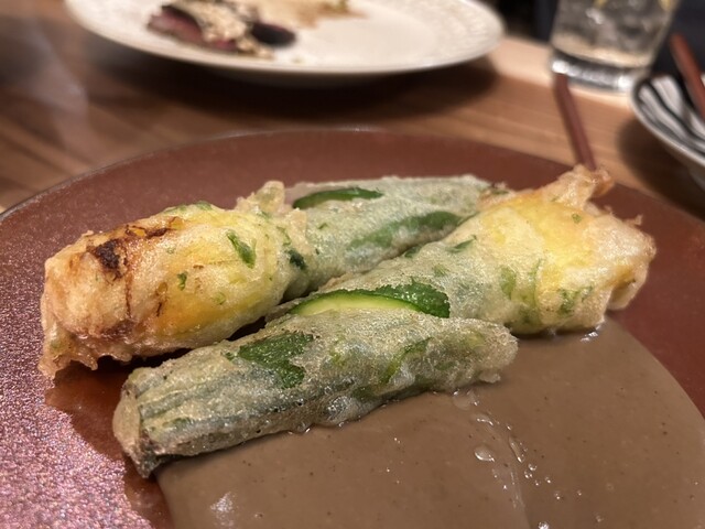 花付きズッキーニこれがヤバうま 天ぷらをソースで