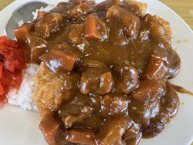 大きめのカツは食べやすい大きさにカットされ、カレーはデミグラス風の味で個人的にはかなり好きな味。大衆食堂のカレーは妙に家庭っぽいのが多いがこの味はかなり新鮮。