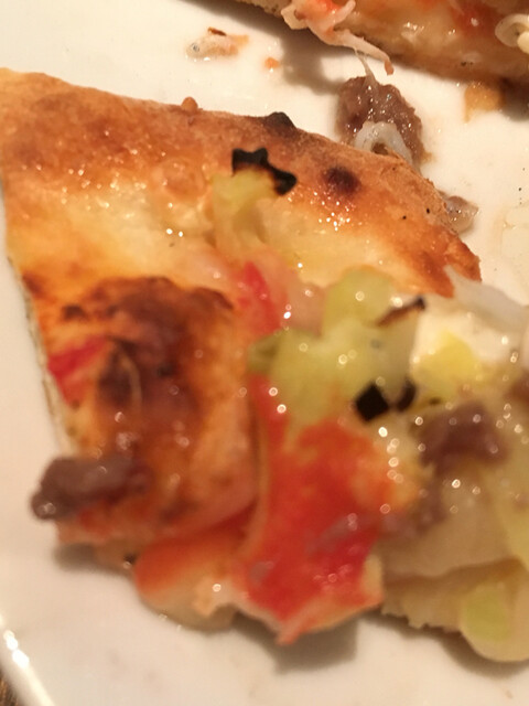 で PIZZAです 皮のトコは 優しい店員さんに言って 唐辛子入りのオリーブオイルを貰って食べた方が美味しいですね 無駄なく食べれまっす