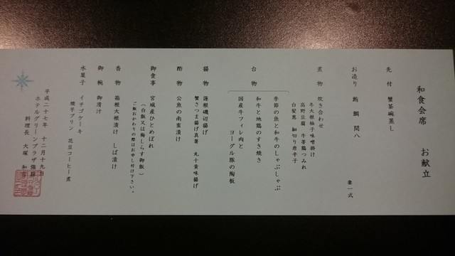夕ご飯:お品書き(2015.12.19)