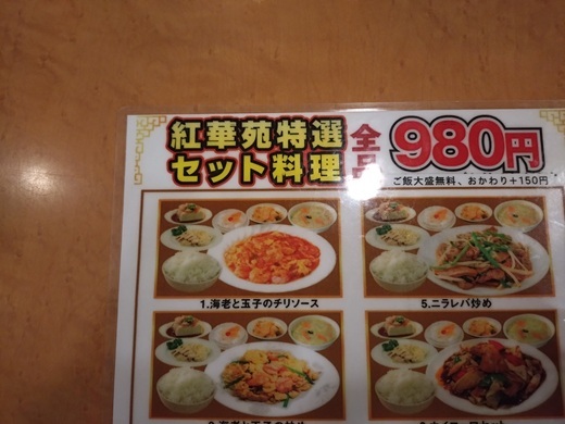 まず、あまりにも激安なので、値段について聞いてみました。「本当にこの値段で大丈夫ですか?」と念を押したのですが、「大丈夫です」との答えでした。そこで、定食は安すぎるので、特選セットのメニューを見せてもらいました。(全品980円)でした。定食より高いですが、前菜が一品選べました。