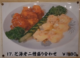 全てが中華街の味なのに、価格は大口価格で激安なので、驚きました。中華街なら倍の¥4000はかかっただろうと思われる料理の数々の内容でした。リコスの店員さんのTさんのクチコミを信じて本当によかったです。近いし、ランチもディナーも同料金で、品数もすごく多いのに、激安で、味も中華街の味という、近所に住む私達にはラッキーすぎるお店でした。絶対また来ようと思いました。海老料理と焼きそば(特に上海焼きそば)が得意とのことでしたので、次回は上海焼きそばあたりを狙ってみようかなと思って、お店を後にしました。なお、支払いは現金のみでした。(参考:店に貼ってあった各種の料理)私達の他には、昨日も居た常連さんが、今日も泡盛のボトルキープをされていて、いきなり、ガバガバ一人酒盛りをされていました。料理はお酒がある程度進んでから召し上がるとのことでした。(またしても深堀りで聞いてしまいました)味を知っている常連さんはかなり多いようで、ボトルキープの棚には、30本近いボトルが並べられていました。愛するべき町中華というのは、こういうお店を指すのではないかと思いました。大口で中華を食べたことはなく、大口価格で本格的な中華街の味を楽しめるこのお店は私も常連になりそうな魅力的なお店でした。次は上海焼きそばあたりをいただこうかな、と既に次の計画を立てています。ご馳走様でした。