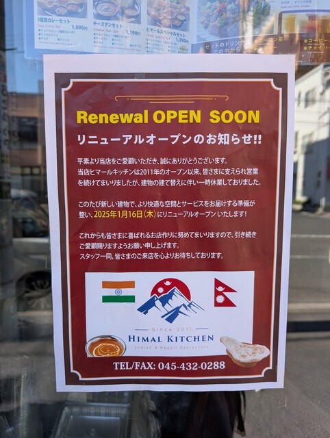 一昨日、「モンスーン」に「テイクアウトAセット」をいつものように買いに行ったら、オーナーと奥さんが、「ヒマールキッチン」が木曜にリニューアルオープンするというので、お店に行ってみました。午後3時頃だったので、休憩時間でした。真新しいお店と、お花が新鮮でした。オーナーに聞いてみたのですが、当面オーナーは「ヒマールキッチン」と「モンスーン」を行ったり来たり、するそうです。