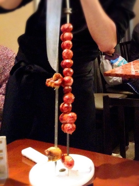 シュラスコは初体験…全部で12種類のお肉を、テーブルで切り分けてくれますがお腹いっぱいで全種類は制覇出来ず…(*_*)豚、牛、鶏、焼いたフルーツやチーズなどそれぞれ味わいも違い、お肉メインでも飽きなかったです。サーロインより、イメージとしては赤身で硬そうと思っていたイチボが美味しかったです。あと鶏肉と豚バラ!