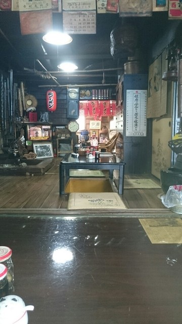 そして入り口に到着。のれんや看板がなければただの民家です。しかも靴は入り口で脱いであがるシステム。中に入ると、いや、もうこれは完全に他人の家です(笑)古民家風のお店なのか、お店っぽい古民家なのかわかりません。とりあえず壁に貼られたメニューをチェック。まずはラーメン。あと焼き飯もある。ラーメンと同じ値段。お店の方に量を聞くと、ラーメンと一緒に頼んでも食べきれる量だそう。じゃあ、というわけでお願いします。