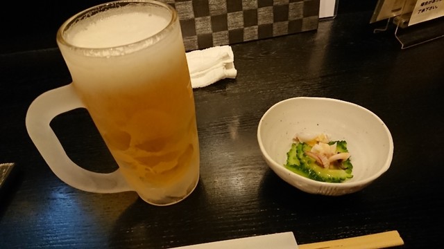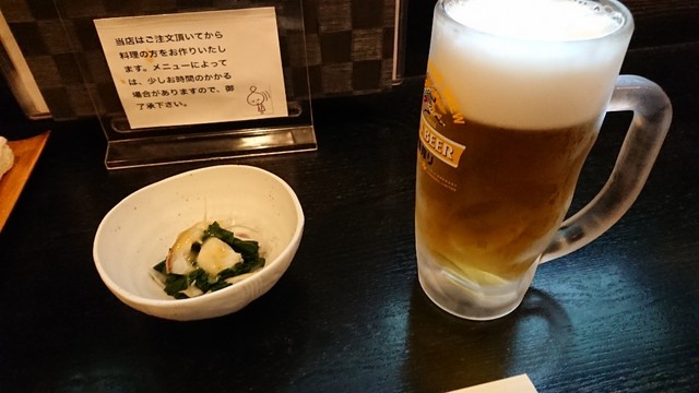 この日のお通しは酢味噌和えだったんですけど、単なる酢味噌和えじゃなくて何か隠し味が入ってるぽかったんですよねえ。聞けばよかった。