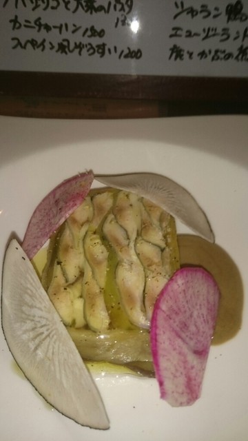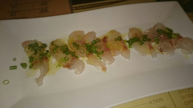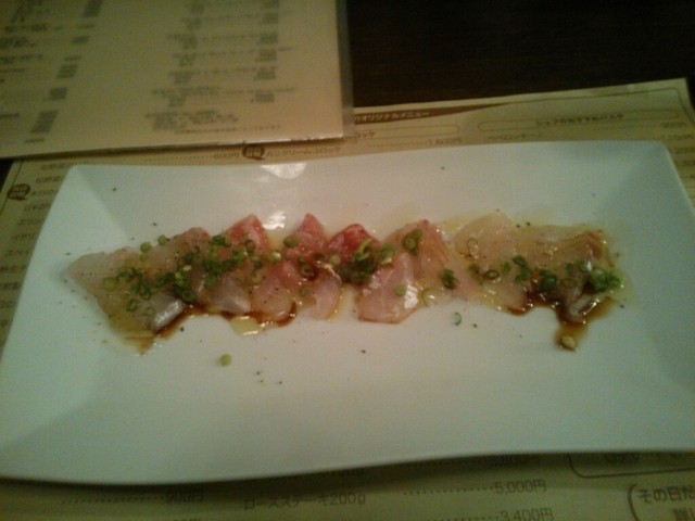 *真鯛のカルパッチョ…真鯛とドレッシングで勝負の一品。美味い。