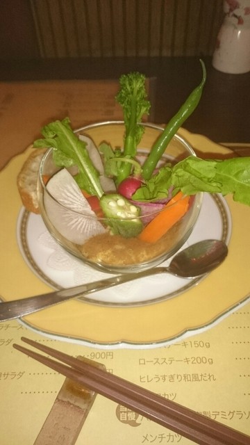 カニクリームコロッケと真鯛のカルパッチョは前回に続いてオーダー。もうね、ここのカニクリームコロッケは凄い。本当は、トマトのキッシュもリピートしたかったのですが、残念ながらこの日は終了してました。代わりにどうですか、と勧めてくれたのが赤ピーマンのムースきゅうりのガスパチョソース。これがもう旨いのなんのって。前回もそうだったのですが、ここはお店の方のオススメが、もうべらぼうに旨いんですよ。これ、書いていて思ったんですが、予約の時点でおまかせのコースにしてもらえばいいのかな?ここならばそういうリクエストも受けてくれそう。ま、今回は途中で宮崎の友人と合流したので、これでよかったのかも。