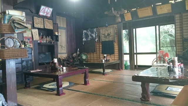 そして入り口に到着。のれんや看板がなければただの民家です。しかも靴は入り口で脱いであがるシステム。中に入ると、いや、もうこれは完全に他人の家です(笑)古民家風のお店なのか、お店っぽい古民家なのかわかりません。とりあえず壁に貼られたメニューをチェック。まずはラーメン。あと焼き飯もある。ラーメンと同じ値段。お店の方に量を聞くと、ラーメンと一緒に頼んでも食べきれる量だそう。じゃあ、というわけでお願いします。