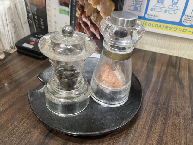 自分で取り分けた後に自分で岩塩や黒胡椒を好みでかけて食べます。