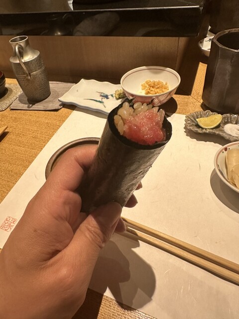 この日は白エビの握りとかきずなさんで初めて、刺激的でおいしい