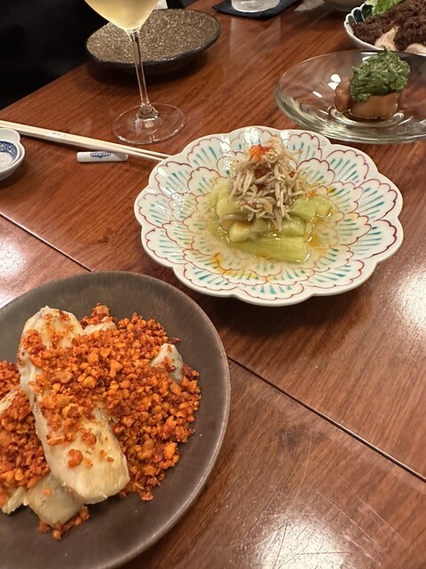 茄子の料理 芋 イカ ホタテなどの前菜も安定のおいしい中華です。