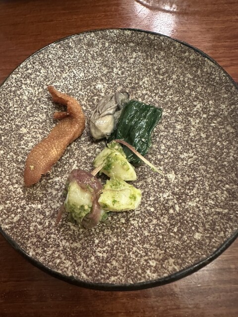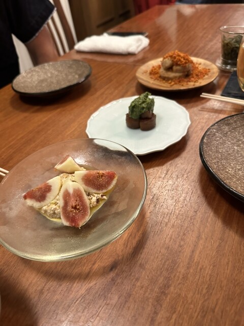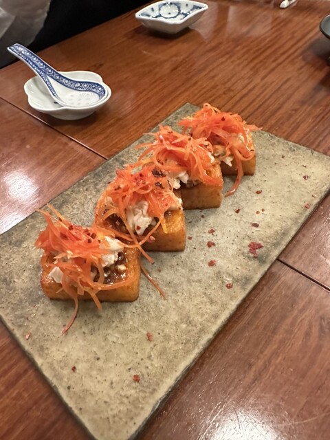 フォアグラ 紹興酒ナッツ乗せ※料理名失念 フォアグラの新しい食べ方だと感心しましたね。上に載っている甘いナッツとフォアグラの脂分が妙にマッチング、うまい(^^♪