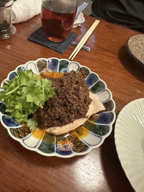 よだれ鶏 辛さ控えめのよだれ鶏、味のキレにかける、重たい感じ。