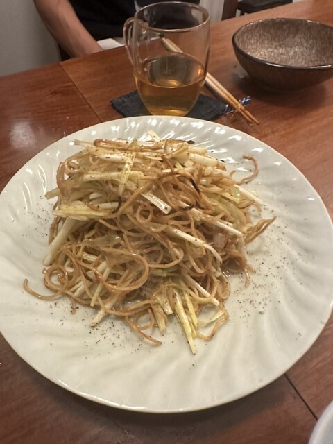 ・焼きそば(こってりORあっさり)味付けを選べます。我々はこってりを選択。焼きそば自体の麺が細く、かなり心を残している感じです。強めの火力での焼きそばなので大分焦げもありそれが香ばしさと、新しい食感を生み出していて、好きな人は好きだろうなと思いました。