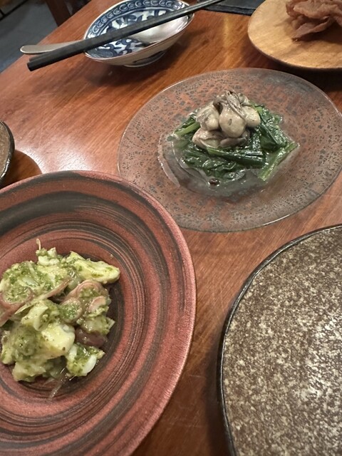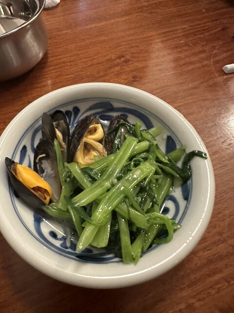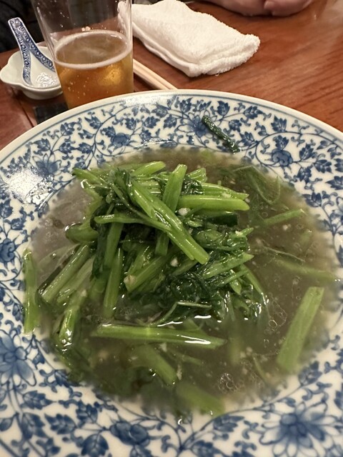 ・空芯菜炒め にんにくを使わず上湯かな、だしで炒めたさっぱりおいしい菜っ葉料理みたいな感じ。うまい