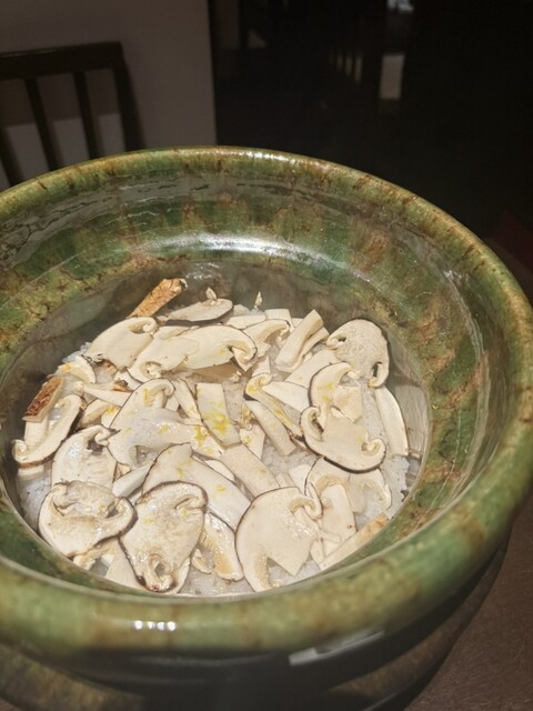松茸ご飯出てきて、あの太い松茸が、ごはんにふんだんに・・・