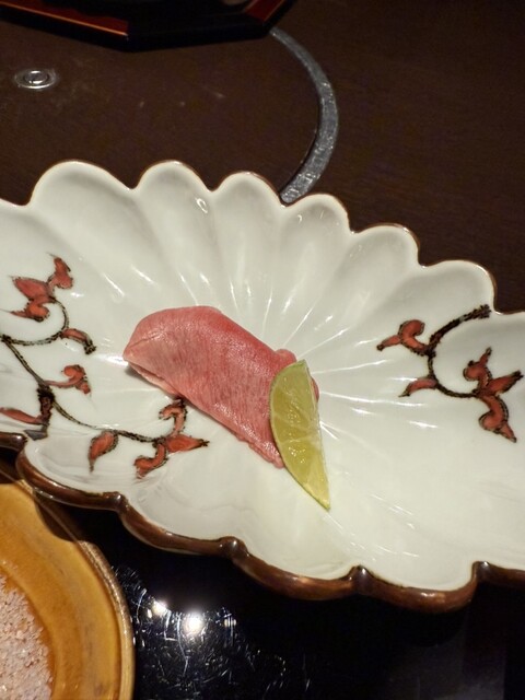 最高肉の薄切り、とろける肉ってこれのことでしょ。柑橘と塩でシンプルに