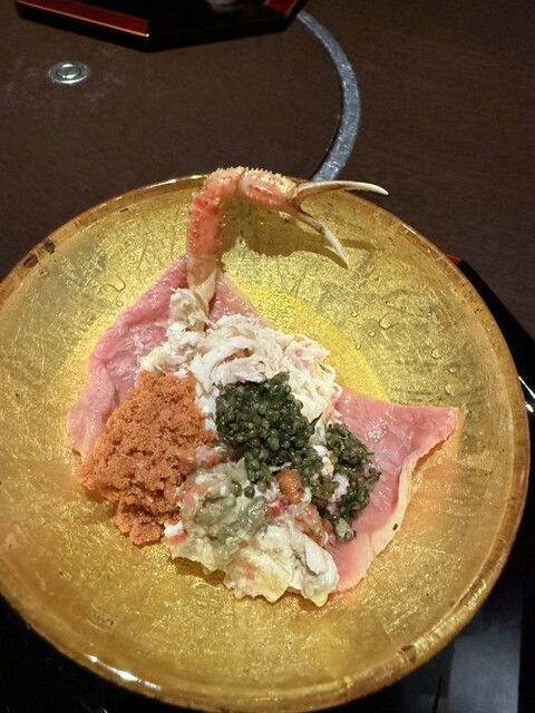 せこ蟹とお肉を併せた贅沢小鉢 肉のうまさと、せこ蟹の内子蟹味噌の