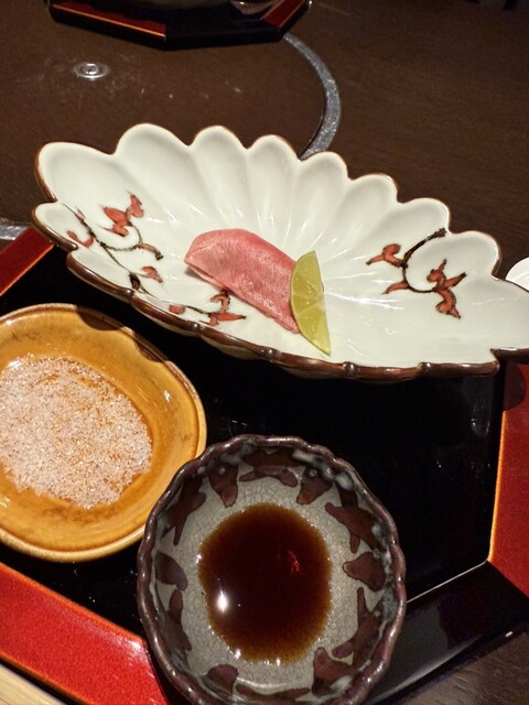この日おいしかったのは、牛タン元を薄くスライス、重ねた一皿