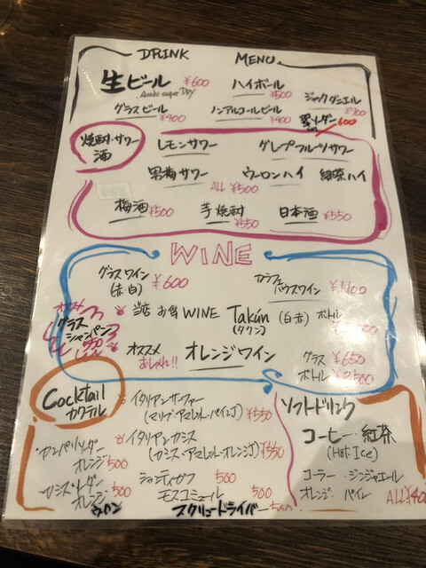 まずは白ワインを頼み、ゆっくりとメニューを拝見します。