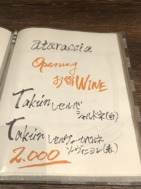 Taku'nレゼルヴァシャルドネ(白)2,000円
