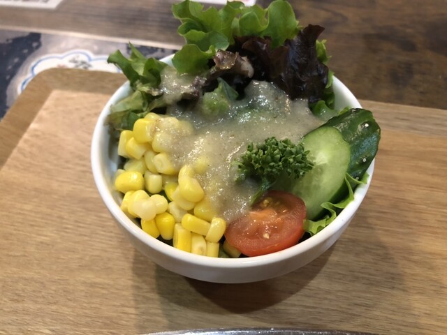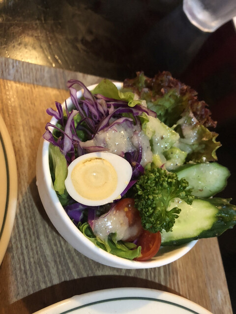 まずはサラダ、ここのドレッシングは好きな味です