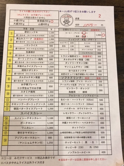 ライス、味噌汁、サラダ、コーヒー付き 1,000円