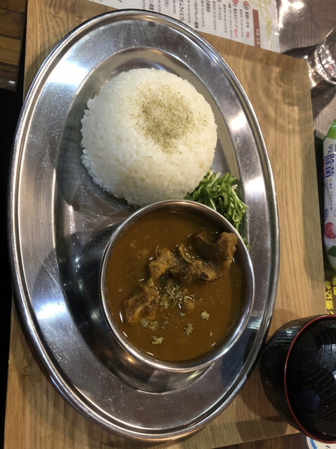 そこで、2番目に気になっていた骨付きやぎカレーをお願いしました。相方はワニカレーを注文しました。