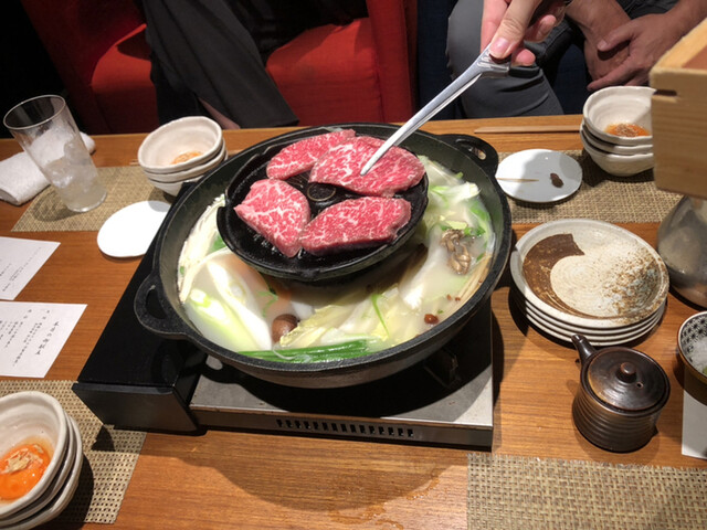 メインの和牛は、鉄板焼き用としゃぶしゃぶ用が登場。店員さんが目の前で調理してくれました。