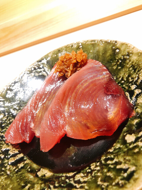 一粒一粒の輪郭が際立つ硬めの米粒を、酸味の際立つ強い酢でコーティング。好みは分かれると思いますが、熟成させたネタや地味の濃ゆいネタと調和したこのシャリが、ことのほか口に合います。