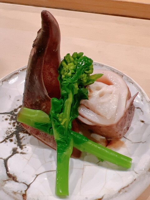 小さなグラスで生ビールをいただいていると、『どうぞ、温まってください・・・』と茶碗蒸しが目の前に。蕪の摺り流し餡がかかっていて、ふうううっ、落ち着くぅぅぅぅぅ。