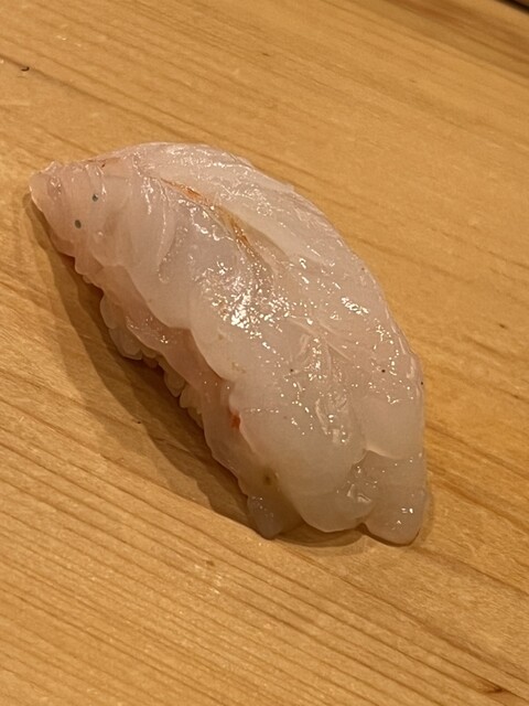 白イカです。薄い水平切りを二枚重ねました