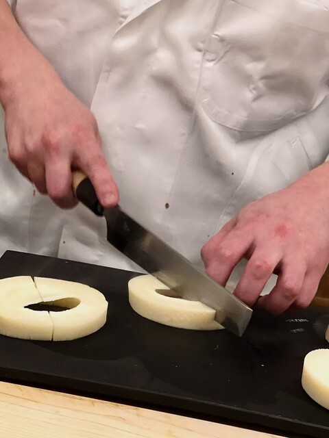 先付けの用意が終わったのか、おもむろに厨房から顔を出された中島氏。実戦的な英語で端から順番にご挨拶。