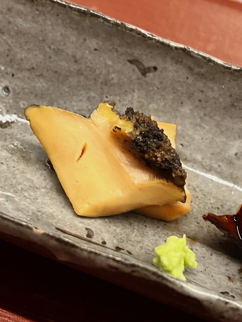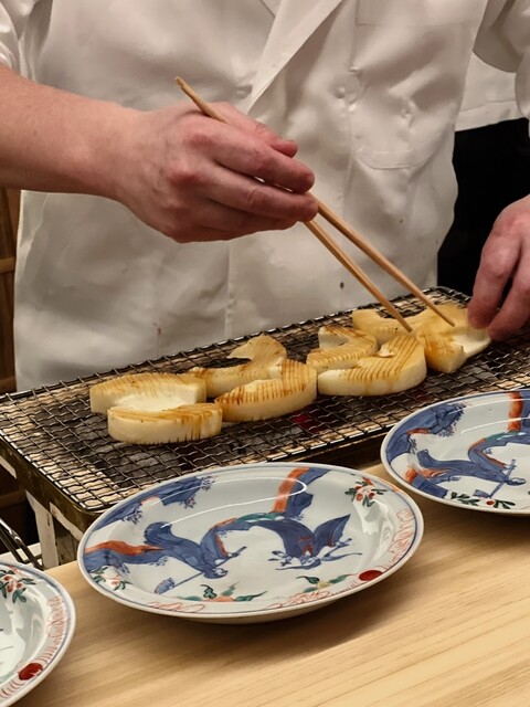 その後も玄界灘の黒鮑と赤ウニ、海うなぎの蒲焼き、噴火湾の毛蟹に甘鯛の松笠、巨大伊勢海老のお椀などなど、怒涛の悶絶固めに還暦を過ぎた爺さんのか細い息も絶え絶え・・・