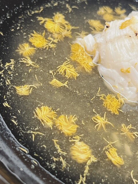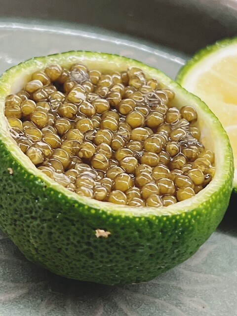 キャビアが敷き詰められていました。蓋を絞って柚子汁を垂らします