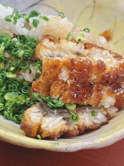 二膳目の海うなぎと万能ねぎのご飯。山椒に痺れが好き
