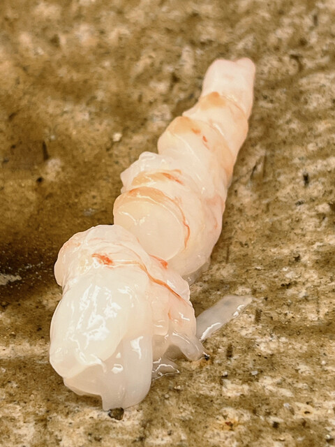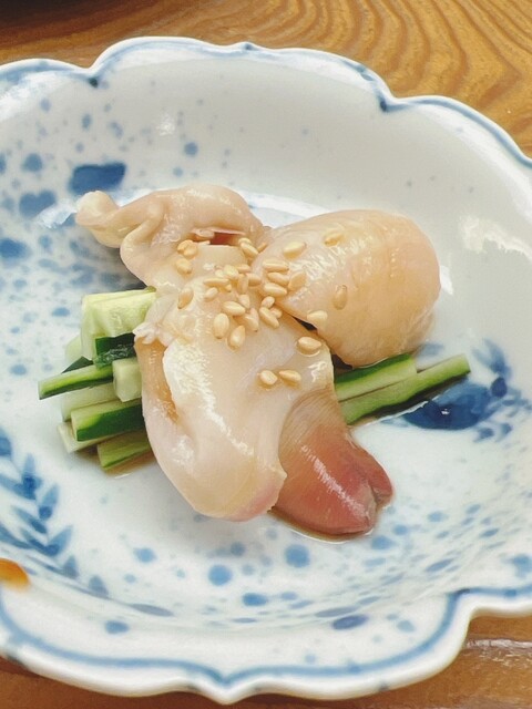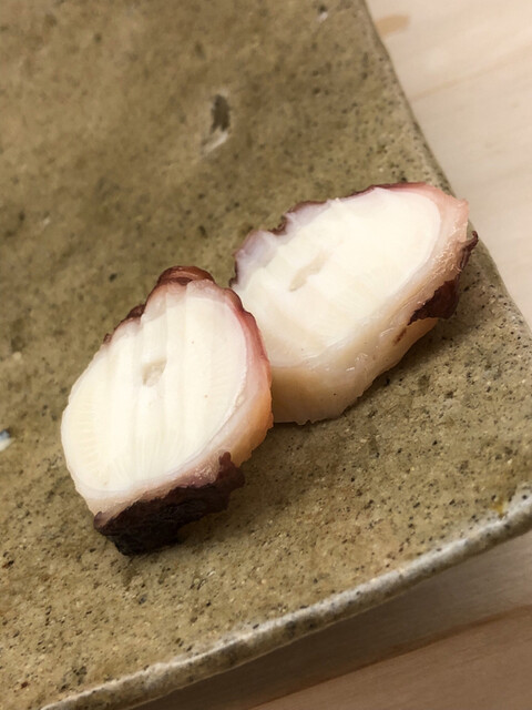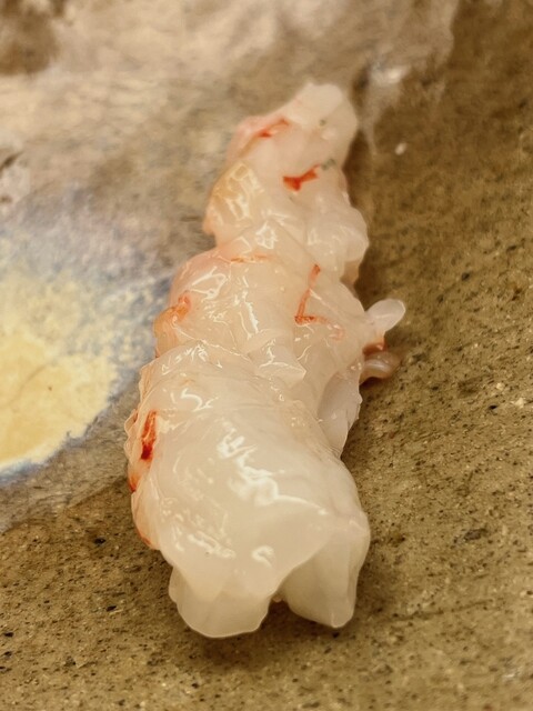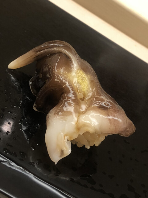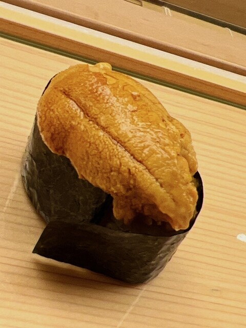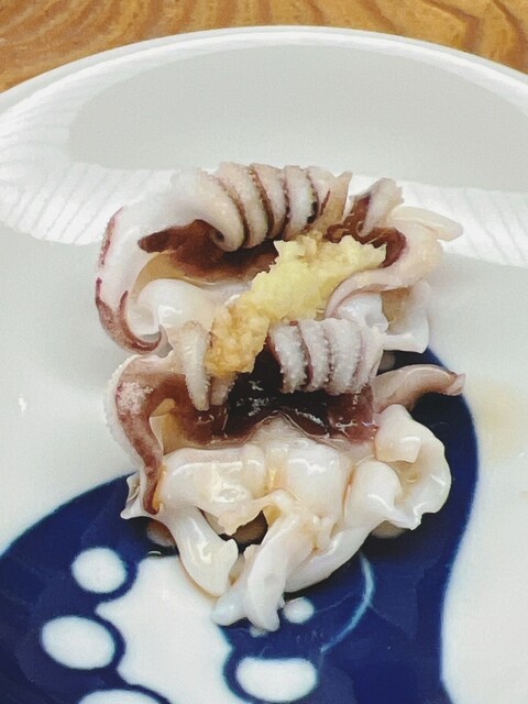 青森の立派なメガイに天草の赤ウニと新子、出水の新イカが勢揃い。おまけに、東一 No.1札も眩しい橘水産のムラサキウニまでご用意されているとは、もうね、絶句。