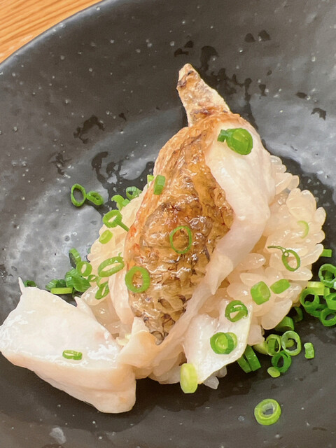喉黒丼を半分ほどいただいたところで骨出汁でお茶漬け風にいただきます