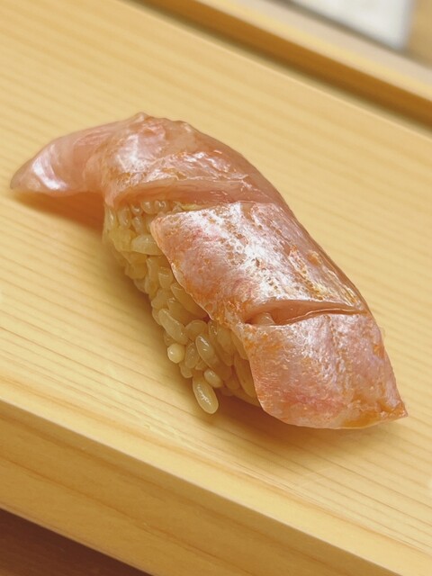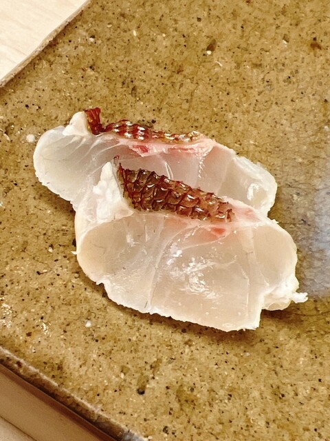 本アラです。九州で呼ぶハタ(クエ)とは全く異なる身質と味わいです。新月の塩と本山葵でいただきます。