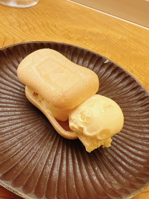 アイスモナカに合わせた日本酒。アールグレイが混ざっているので、リキュールのぶんるい。デザートに合います。